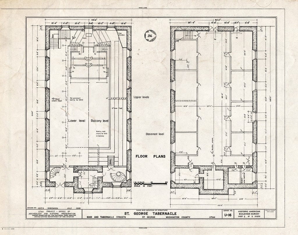 Blueprint HABS Utah,27-SAGEO,9- (Sheet 2 of 9) - St. George Tabernacle, Main Street and Tabernacle Streets, Saint George, Washington County, UT