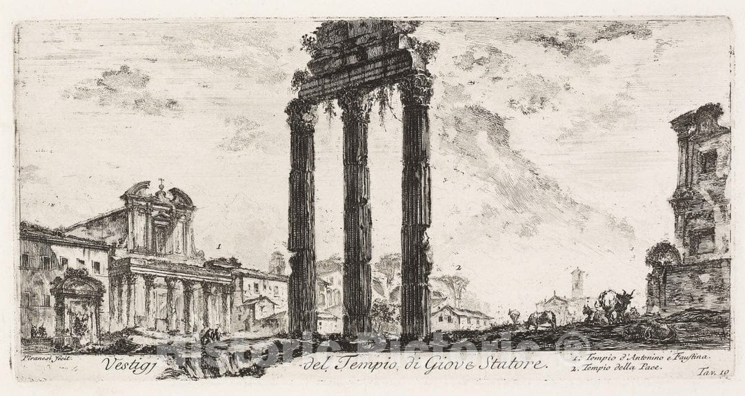 Art Print : Jupiter the Supporter. 1. Temple of Antoninus and Faustina. 2. Temple of Peace, plate 10, Giovanni Battista Piranesi, c.1748, Vintage Wall Decor :
