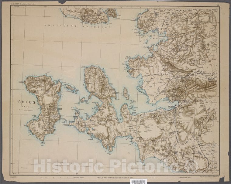 Historic 1890 Map - Sheet 7. 1: 250,000.- Turkey - Chios Island (Greece) Maps Of Asia - Vintage Wall Art