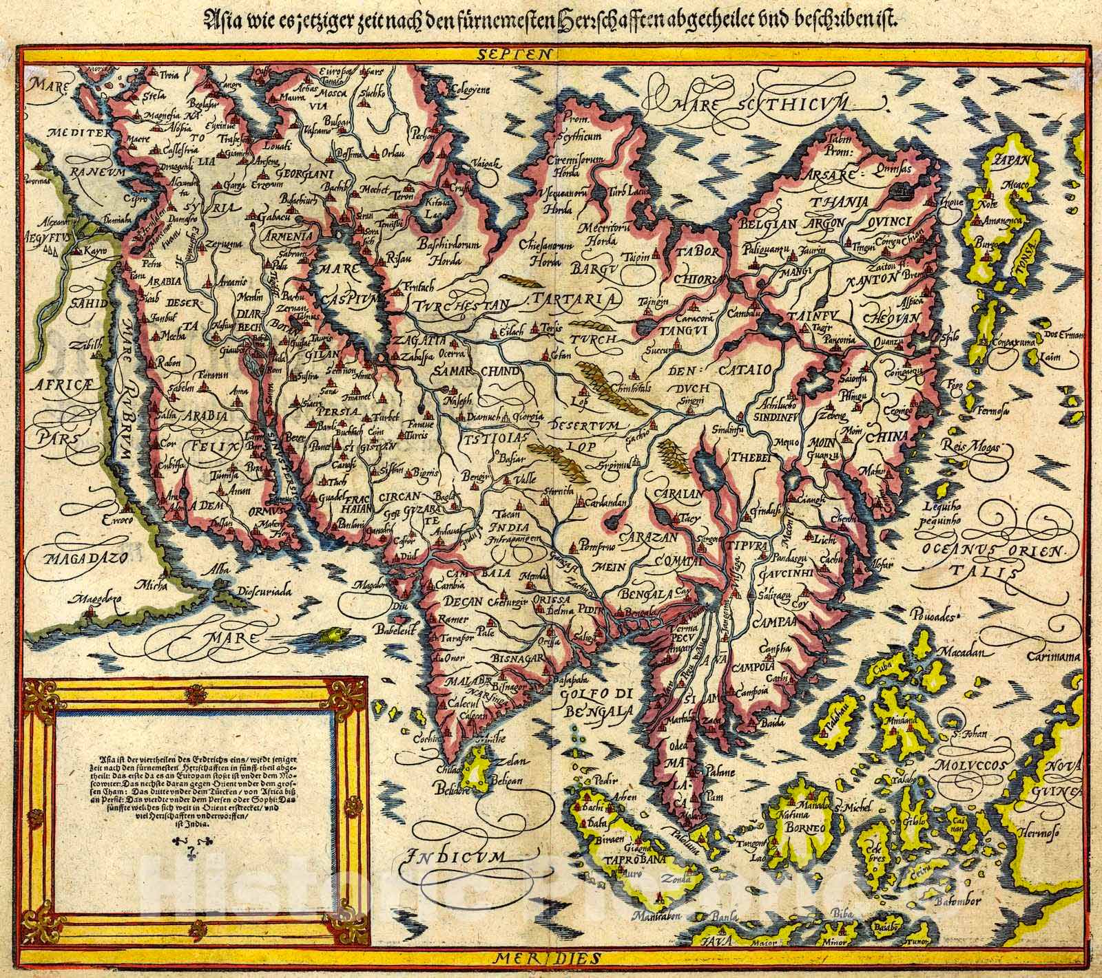 • .Historic Map : 1628 Asia wie es jetziger zeit nach den furnemensten Herzschafften abgecheilet und beschriben ist. : Vintage Wall Art