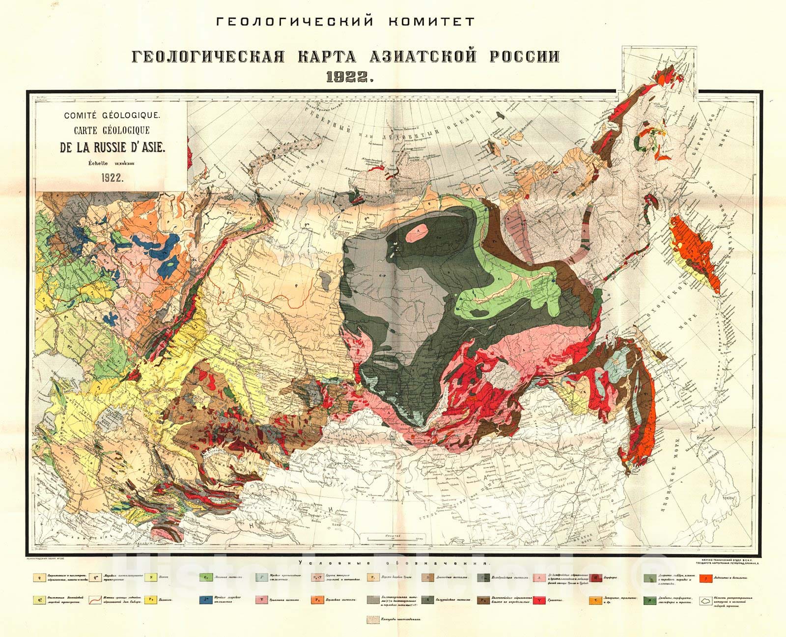Historic Map : 1922 Carte Géologique de la Russie D'Asie (Geological Map of Russia in Asia) : Vintage Wall Art