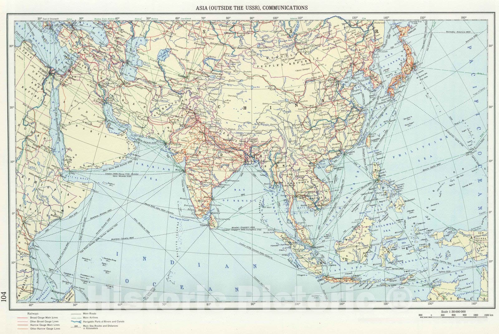 1967 104. Asia (Outside the USSR) Communications. The World Atlas.