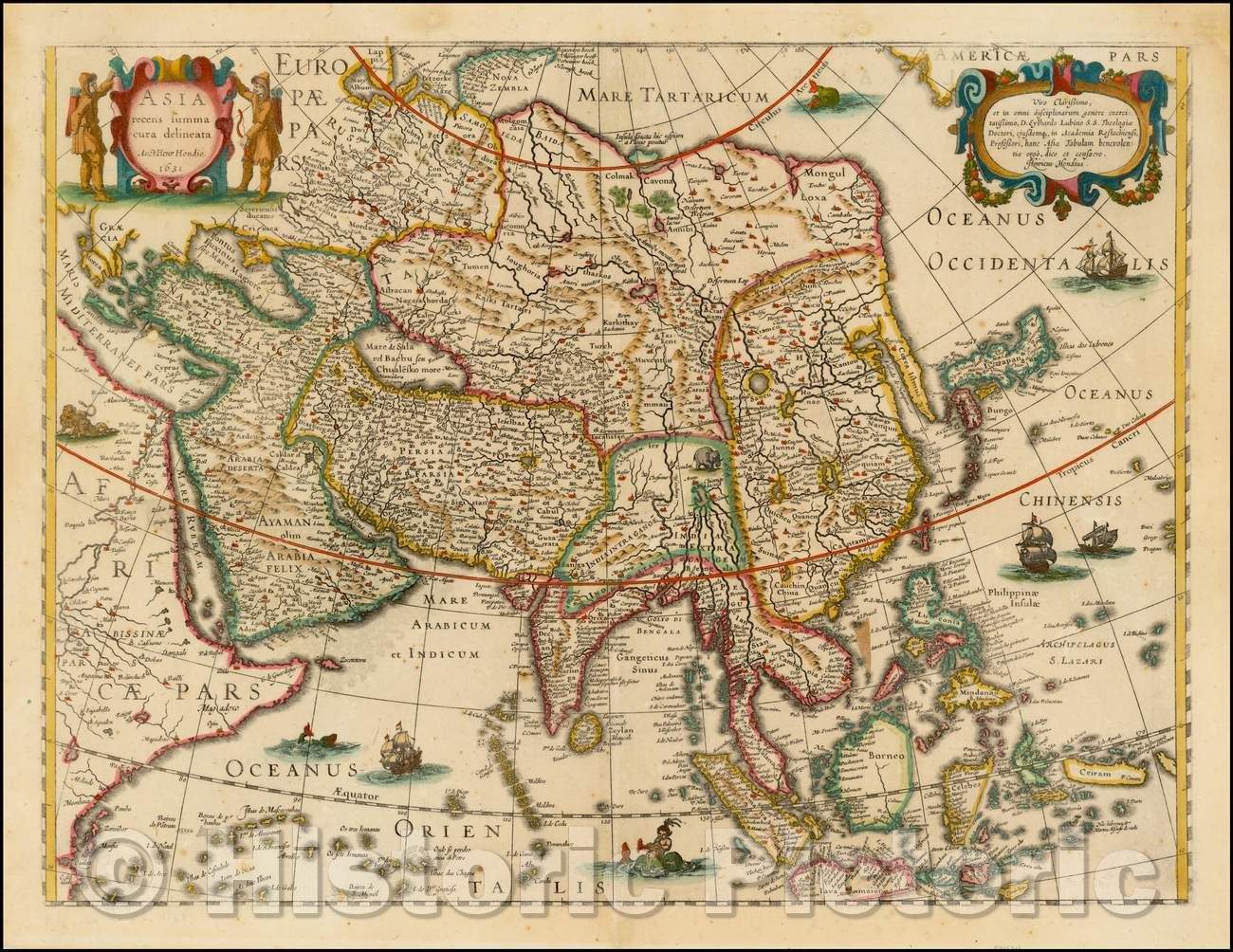 Historic Map - Asia recens summa cura delineata Auct. Henr. Hondio 1631/Asia Partiu outlined Anct. Hcnr. Hondio 1631, 1630, Jodocus Hondius - Vintage Wall Art