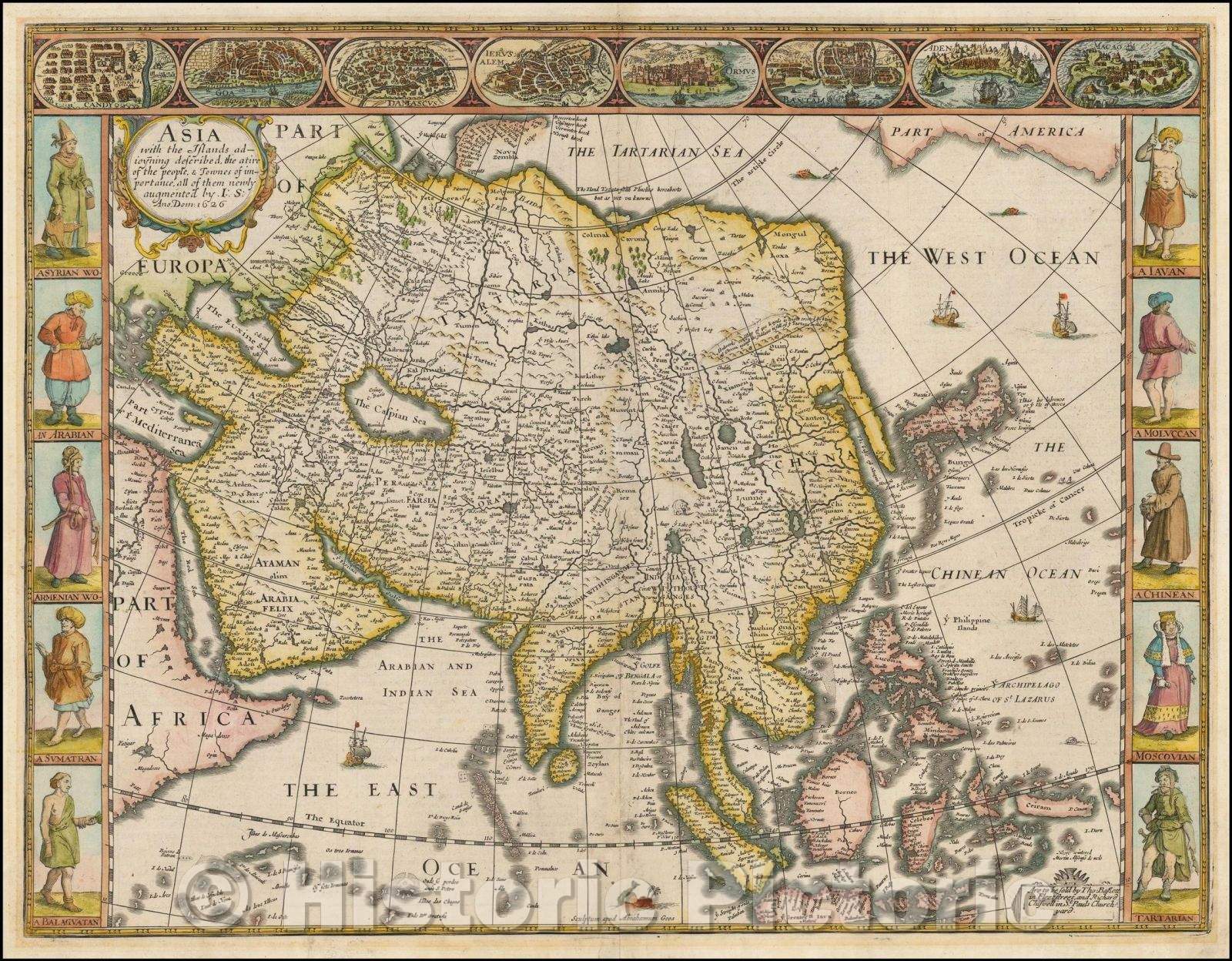 Historic Map - Asia with the Islands adjoining described, the attire of the people, Townes of importance, all of them newly augmented, 1676, John Speed - Vintage Wall Art