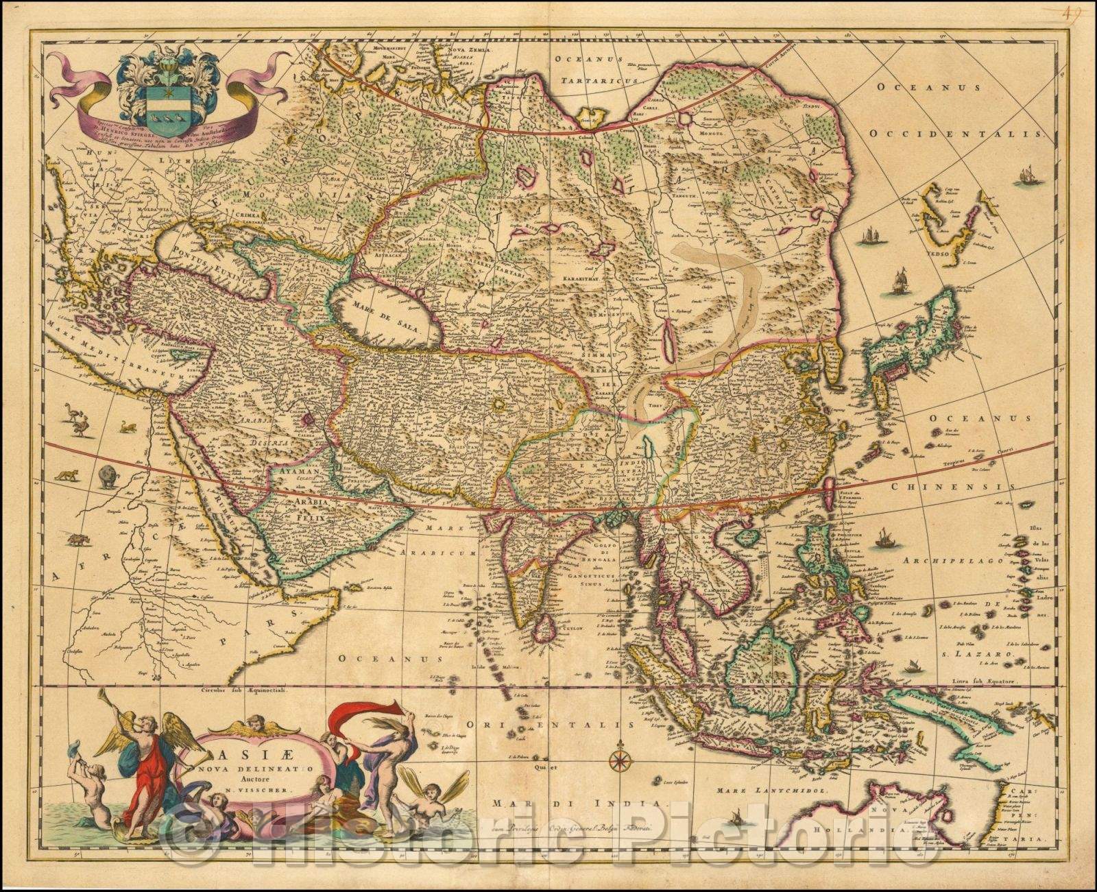 • .Historic Map - Asiae Nova Delineatio, 1670, Nicolaes Visscher I - Vintage Wall Art