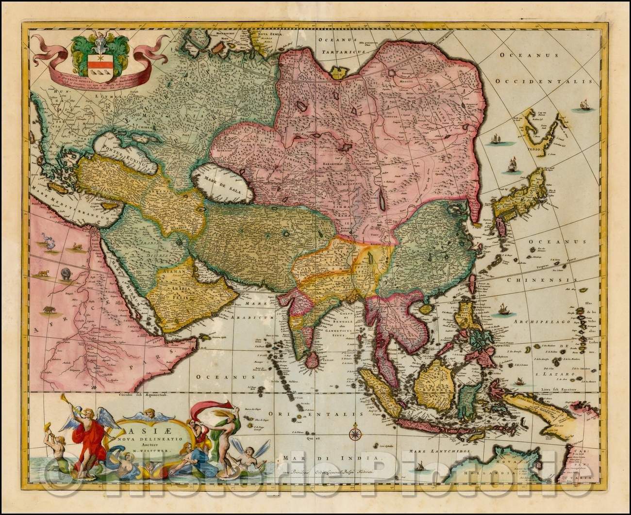 Historic Map - Asiae Nova Delineatio, 1670, Nicolaes Visscher I - Vintage Wall Art