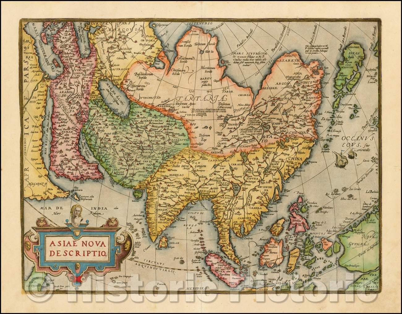 Historic Map - Asiae Nova Descriptio, 1609, Abraham Ortelius - Vintage Wall Art