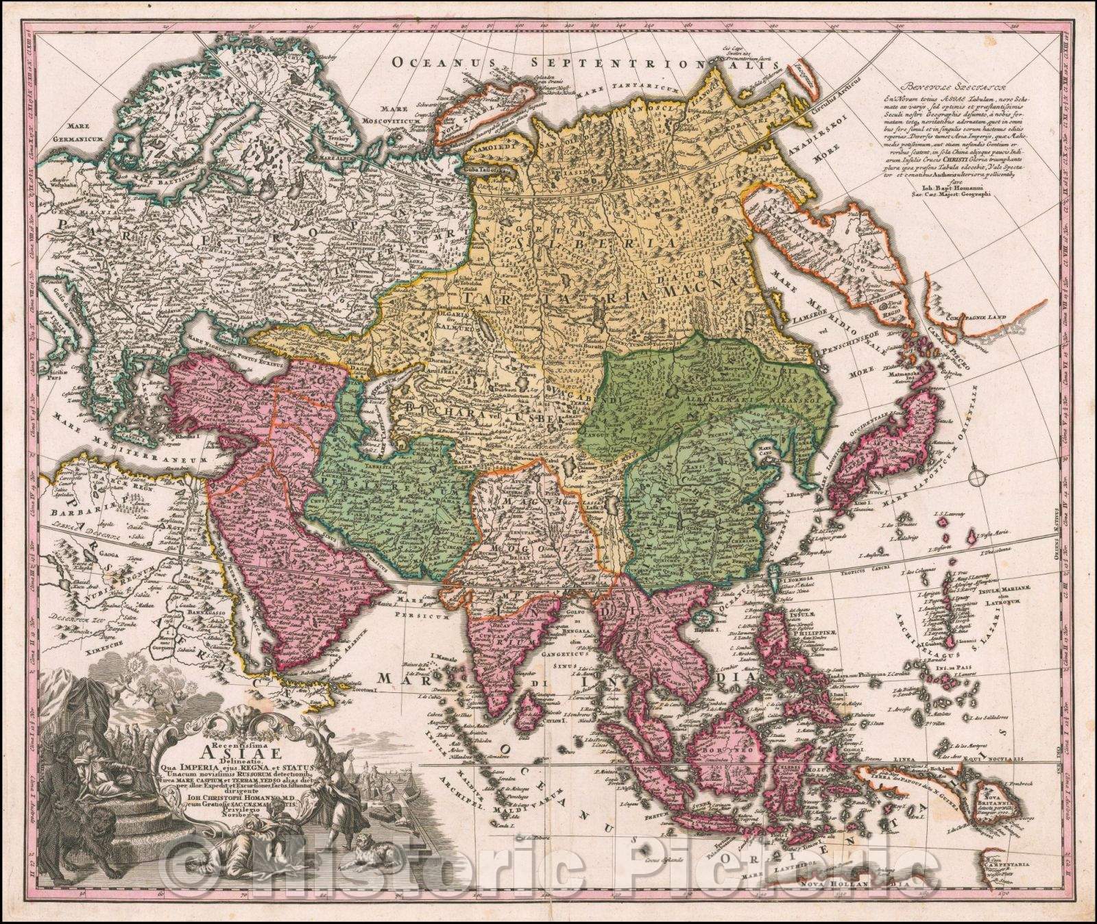 Historic Map - Asiae Recentissima Delineatio Qua Status et Imperia Totius Orientis unacum Orientalibus Indiis, 1720, Johann Christoph Homann - Vintage Wall Art