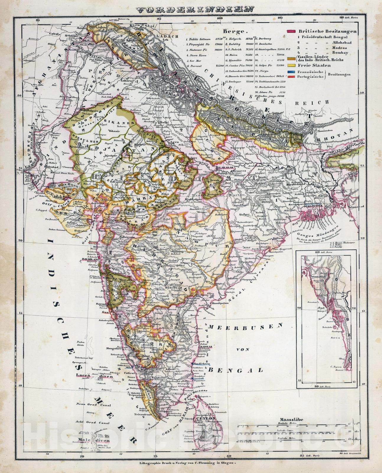 Historic Map : Bangladesh; India, South Asia 1855 Vorderindien. , Vintage Wall Art