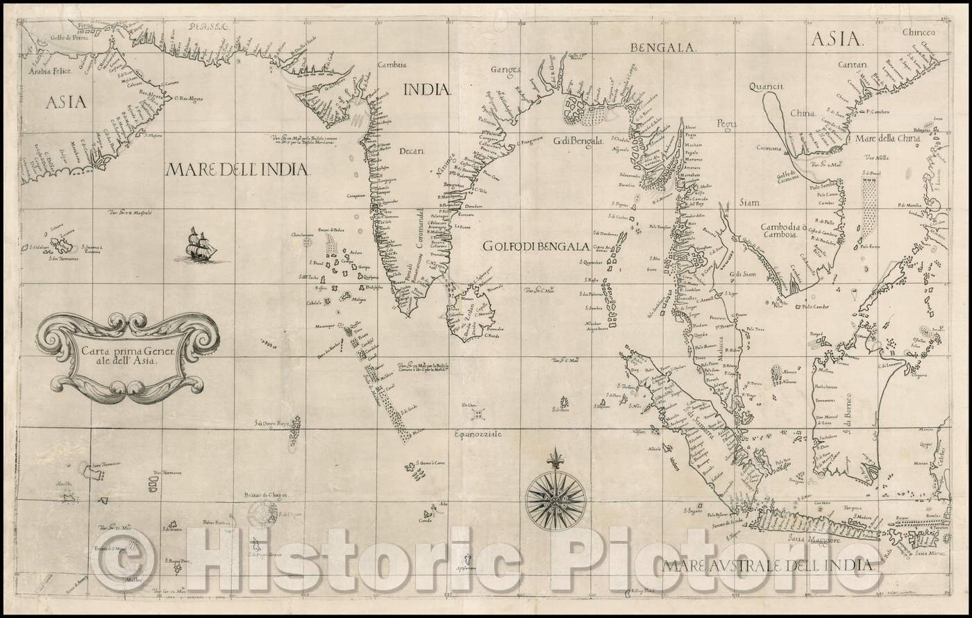 Historic Map - Carta prima Generale dell' Asia/Paper first General of 'Asia, 1646, Robert Dudley - Vintage Wall Art