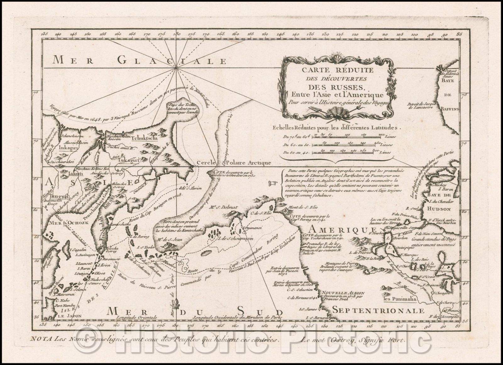 Historic Map - Carte Reduite Des Decouvertes Des Russes Entre l'Asie et l'Am?ique/Map Of Reduite Decouvertes Russians Between Asia and America, 1764 - Vintage Wall Art