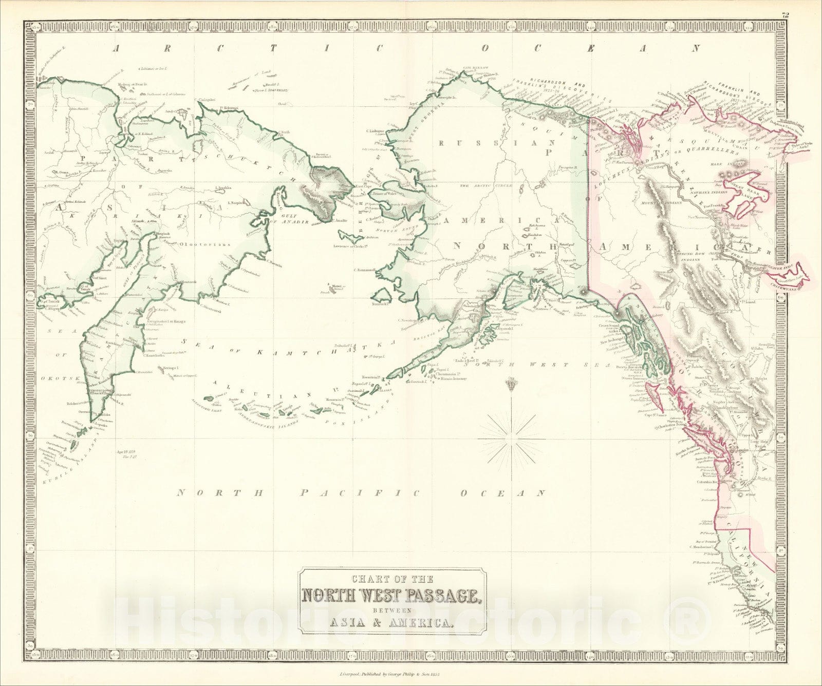 Historic Map : Chart of the North West Passage Between Asia and America, c1855, George Philip & Son, Vintage Wall Art
