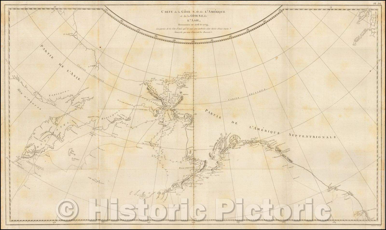 • .Historic Map - Cote N.O. de l'Amerique et de la Cote N.E. de l'Asie, Reconnue :: N.O. Rating of America and N. E. Approval of Asia Recognized in 1778 an, 1785 - Vintage Wall Art