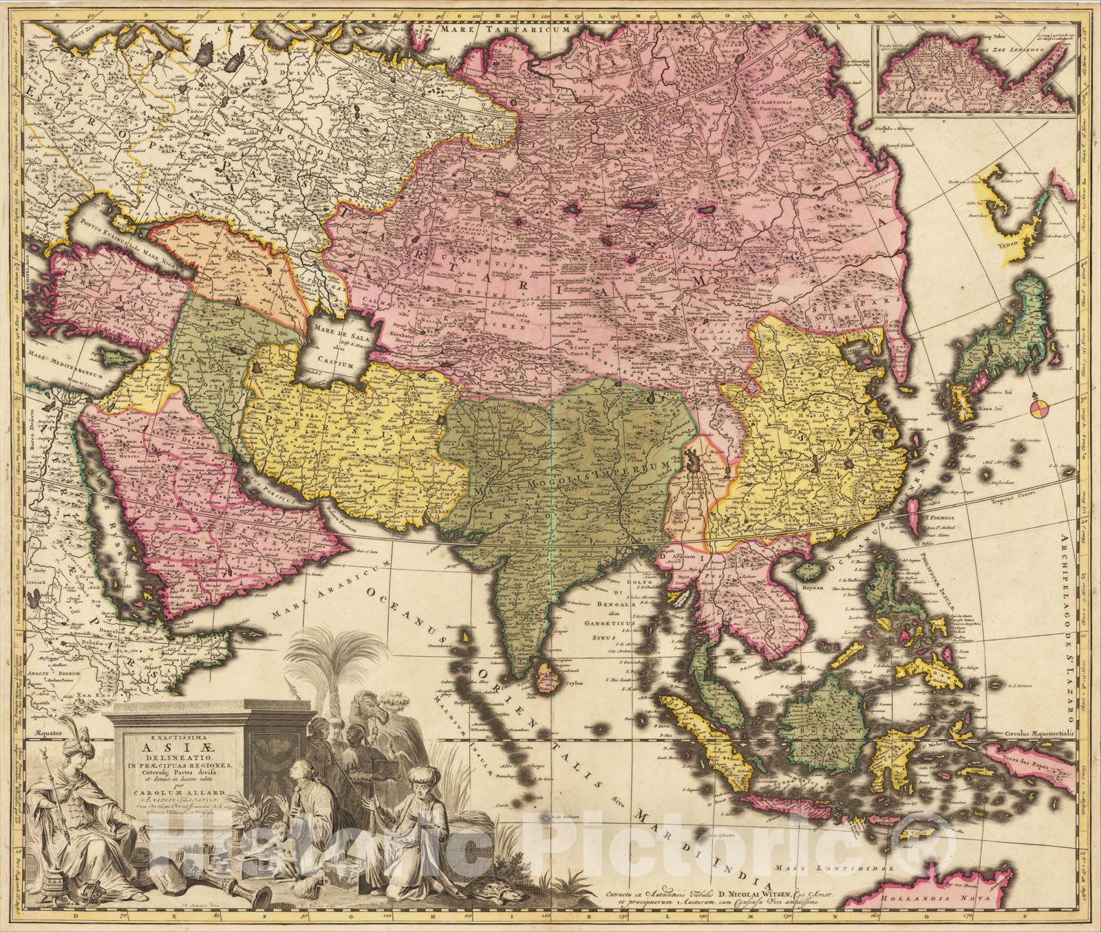 • .Historic Map : Exactissima Asiae Delineatio In Praecipuas Regiones, 1695, Carel Allard, Vintage Wall Art
