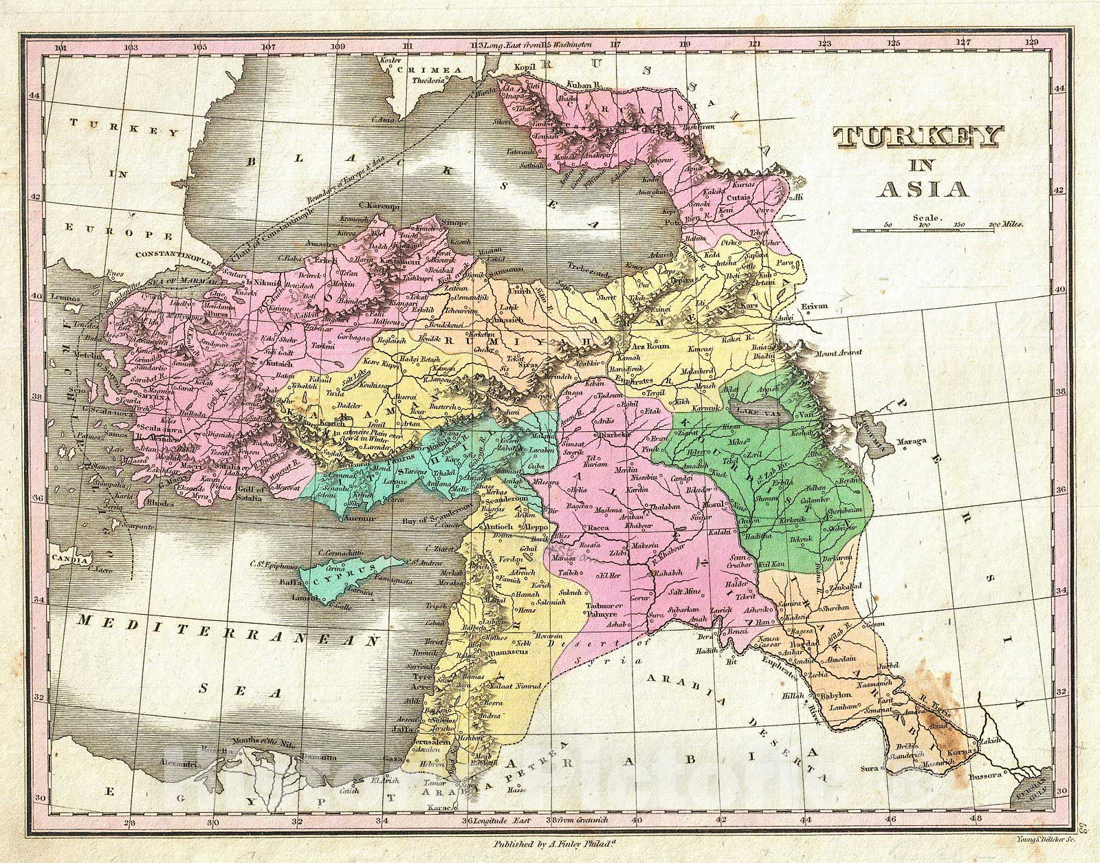 • .Historic Map : Finley Map of Turkey in Asia, Iraq and Israel, Palestine, 1827, Vintage Wall Art
