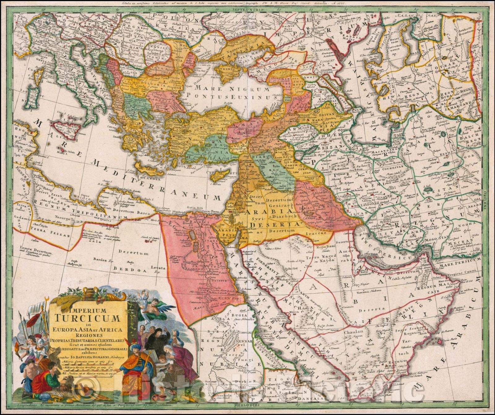 Historic Map - Imperium Turcicum in Europa, Asia, et Africa Regiones Proprias, Tributarias, Clientelares sicut et omens ejusdem, 1730, Johann Baptist Homann - Vintage Wall Art
