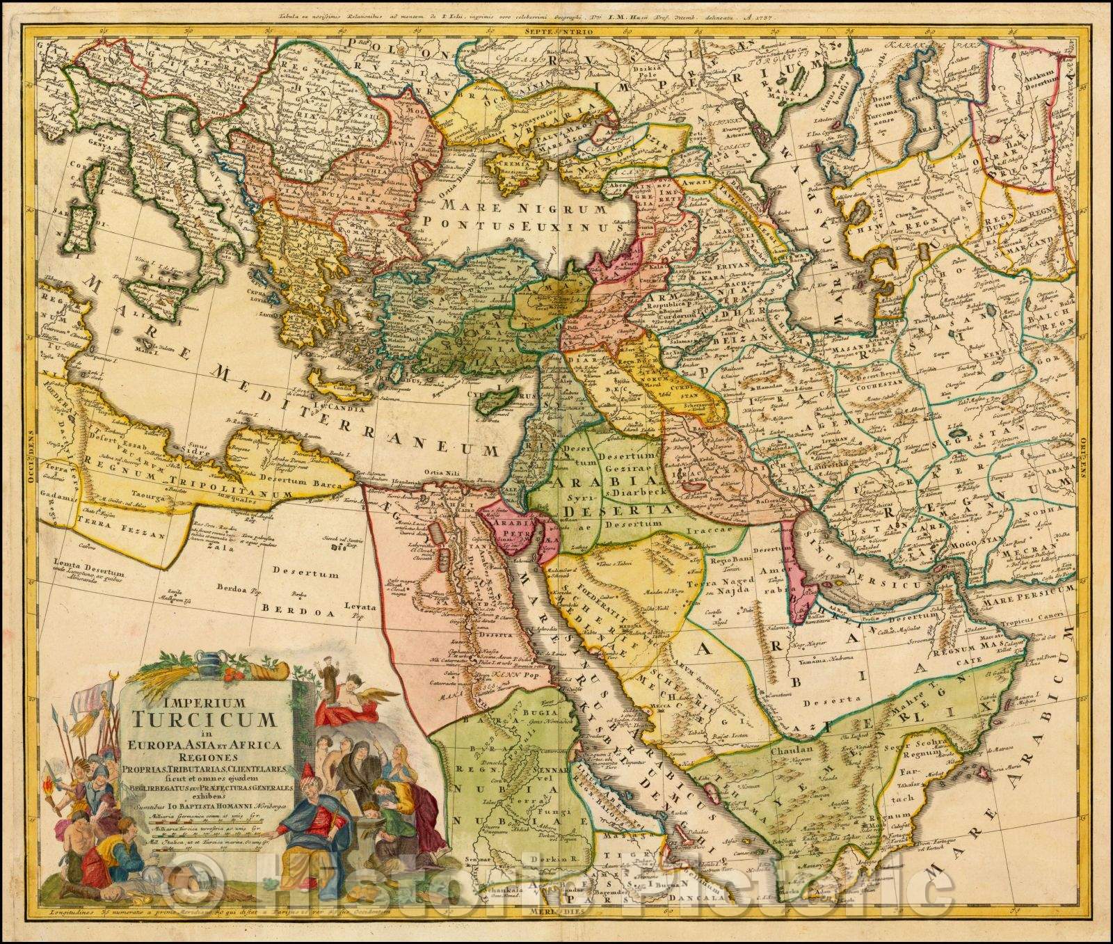 Imperium Turcicum in Europa, Asia, et Africa Regiones Proprias, Tributarias, Clientelares sicut et omens ejusdem , 1737, Johann Baptist Homann