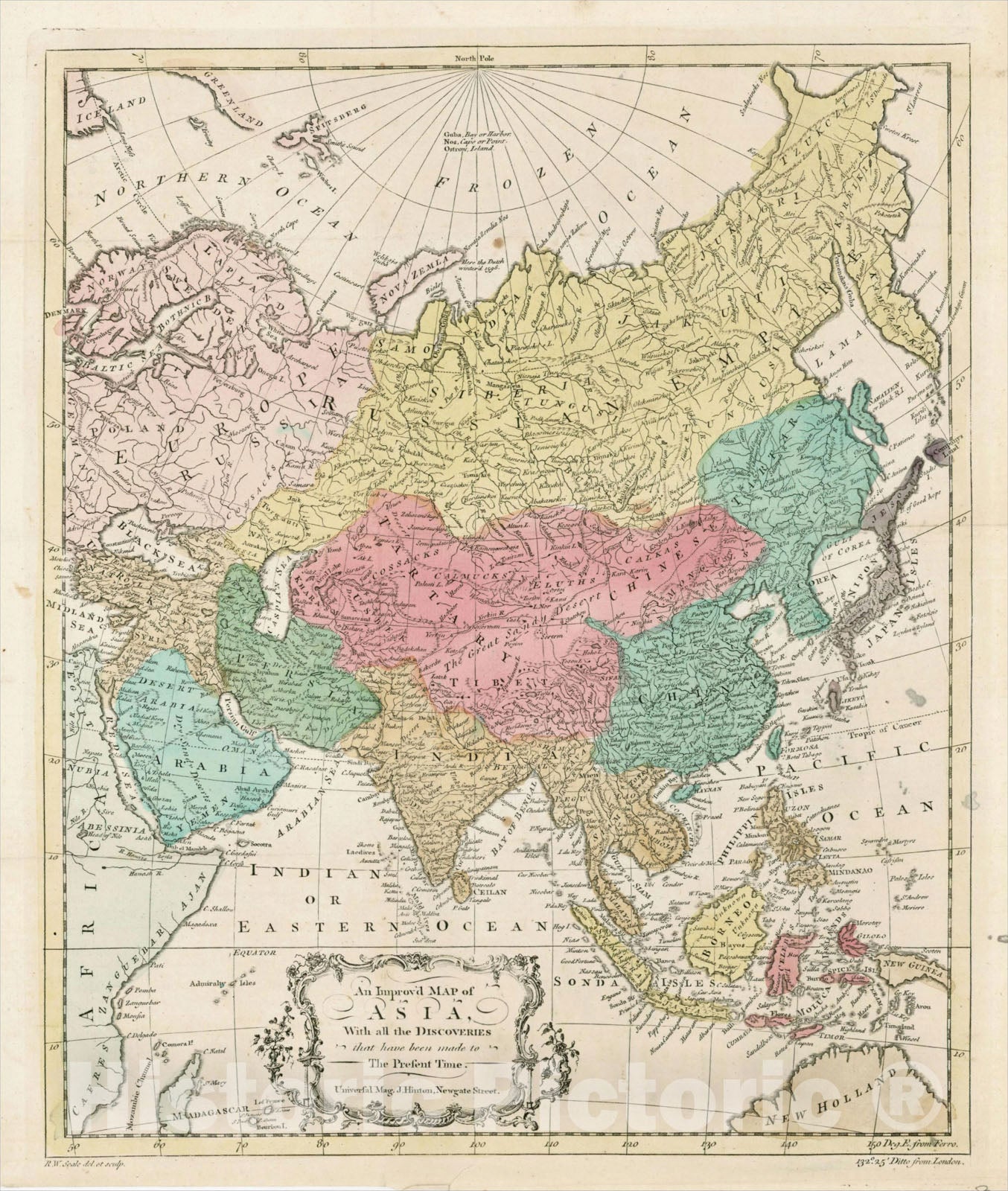 • .Historic Map : An Improv'd Map of Asia, with all the Discoveries that have been made to the Present Time, 1749, , Vintage Wall Art