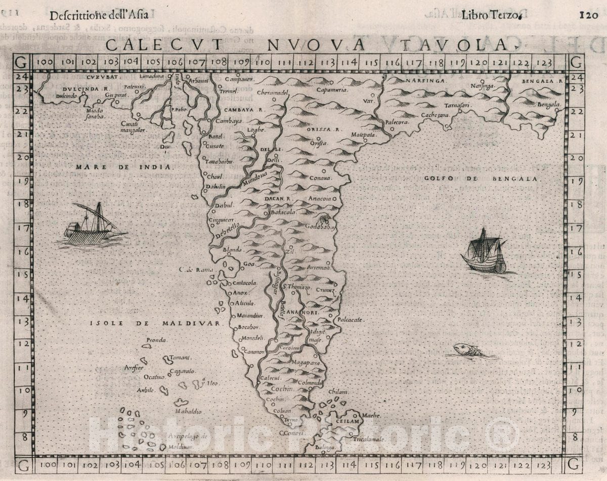Historic Map : India, , Asia Calecvt Nvova Tavola. Descrittione dell' Asia. Libro Trezo, 1599 Atlas , Vintage Wall Art