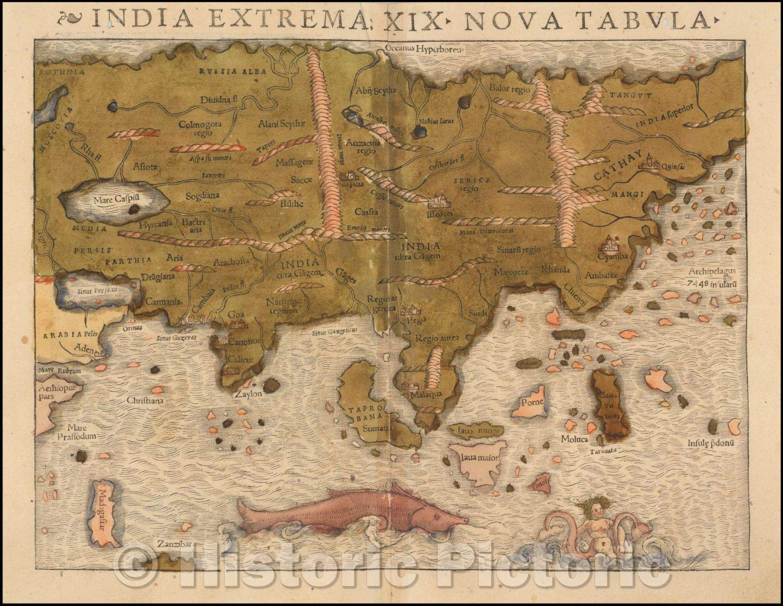 Historic Map - India Extrema XIX Nova Tabula (1st Printed Map of Asia - Old Color!), 1540, Sebastian M?nster v1