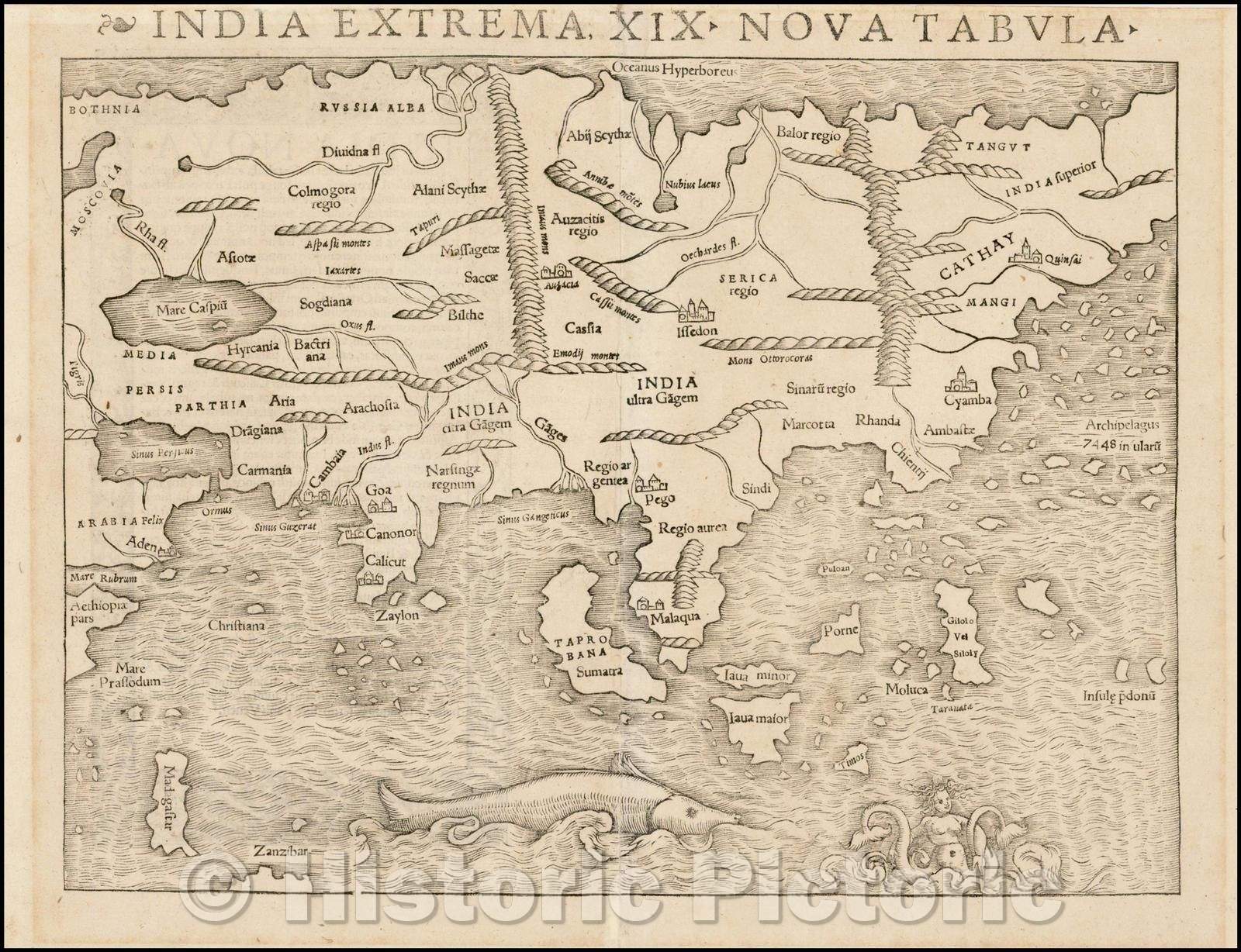 Historic Map - India Extrema XIX Nova Tabula 1st Printed Map of Asia, 1540, Sebastian M?nster v2