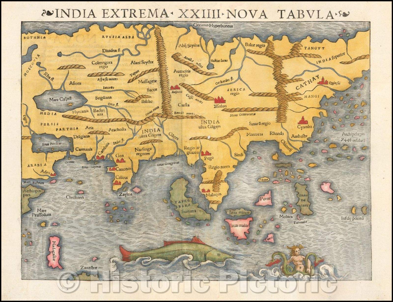 India Extrema XXIIII Nova Tabula 1st Printed Map of Asia, 1545, Sebastian M?nster