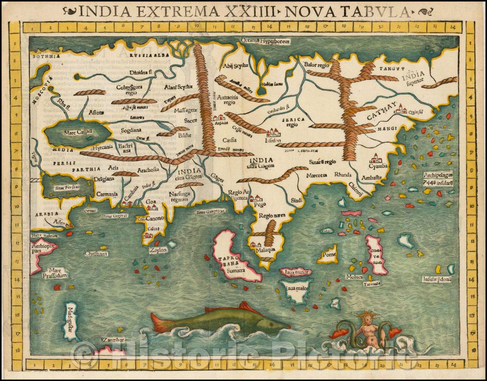 Historic Map - India Extrema XXIIII Nova Tabula 1st Printed Map of Asia, 1552, Sebastian M?nster - Vintage Wall Art