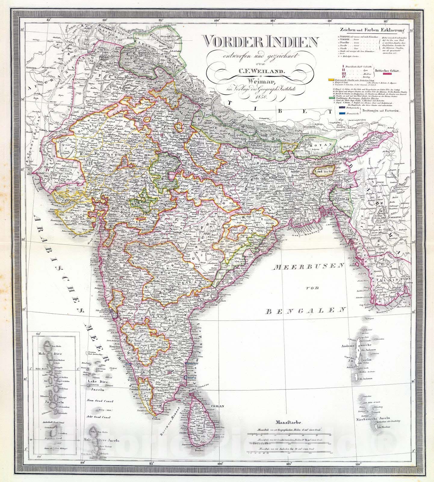 Historic Map : India; Pakistan, South Asia 1850 Vorder Indien. , Vintage Wall Art