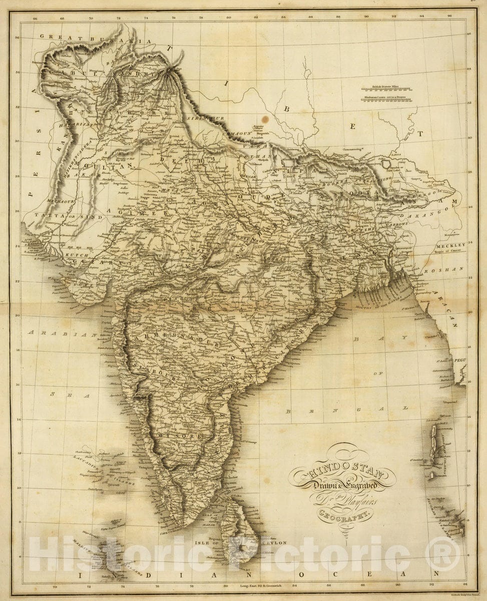 Historic Map : India; Pakistan, Southwest Asia 1814 Indostan. , Vintage Wall Art