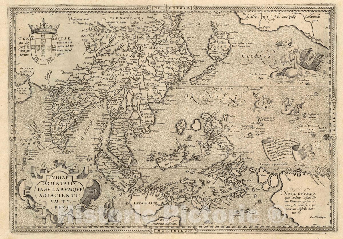 India, South Asia Indiae Orientalis, Insularumque Adiacentium Typus. Cum Privilegio, 1608 Atlas , Vintage Wall Art
