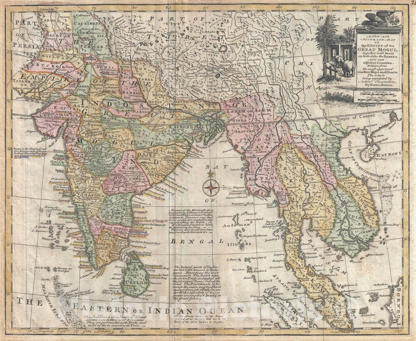 Historic Map : Indian and Southeast Asia "Malaya, Thailand, Singapore, Vietnam", Bowen, 1744, Vintage Wall Art