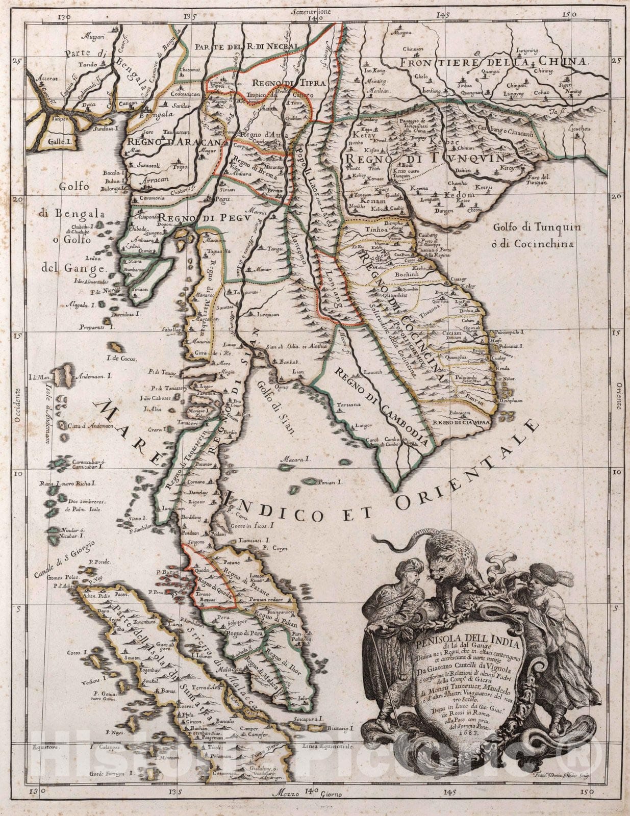 Historic Map : Indochina, AsiaPenisola dell India di la dal Gange 1683 , Vintage Wall Art