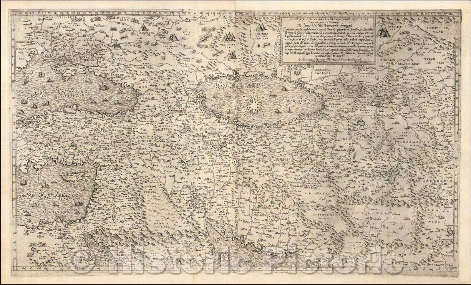 Historic Map - La Descrittione Della Prima Parte Dell' Asia Con i nomi antichi & moderni Di Jacopo Gastaldi Piemontese comografo, 1561, Giacomo Gastaldi - Vintage Wall Art