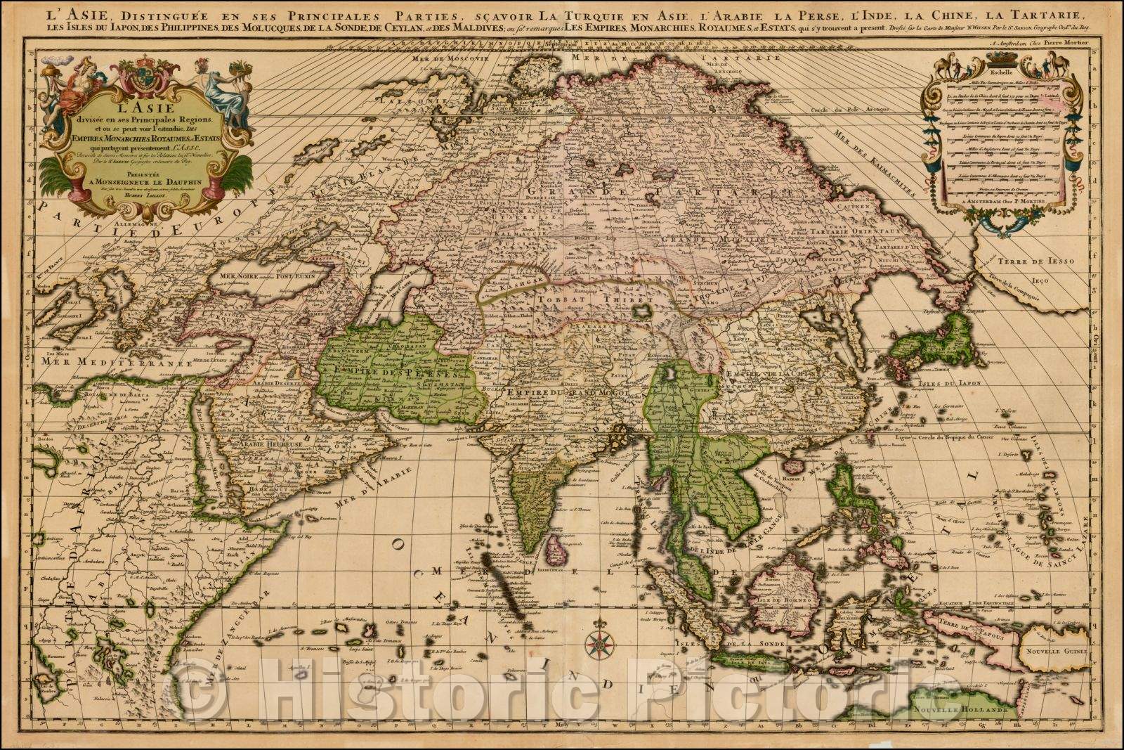 Historic Map - L'Asie divisee in ses Principales Regions/Map of Asia, published by Hubert Jaillot, 1700, Cornelis Mortier - Vintage Wall Art