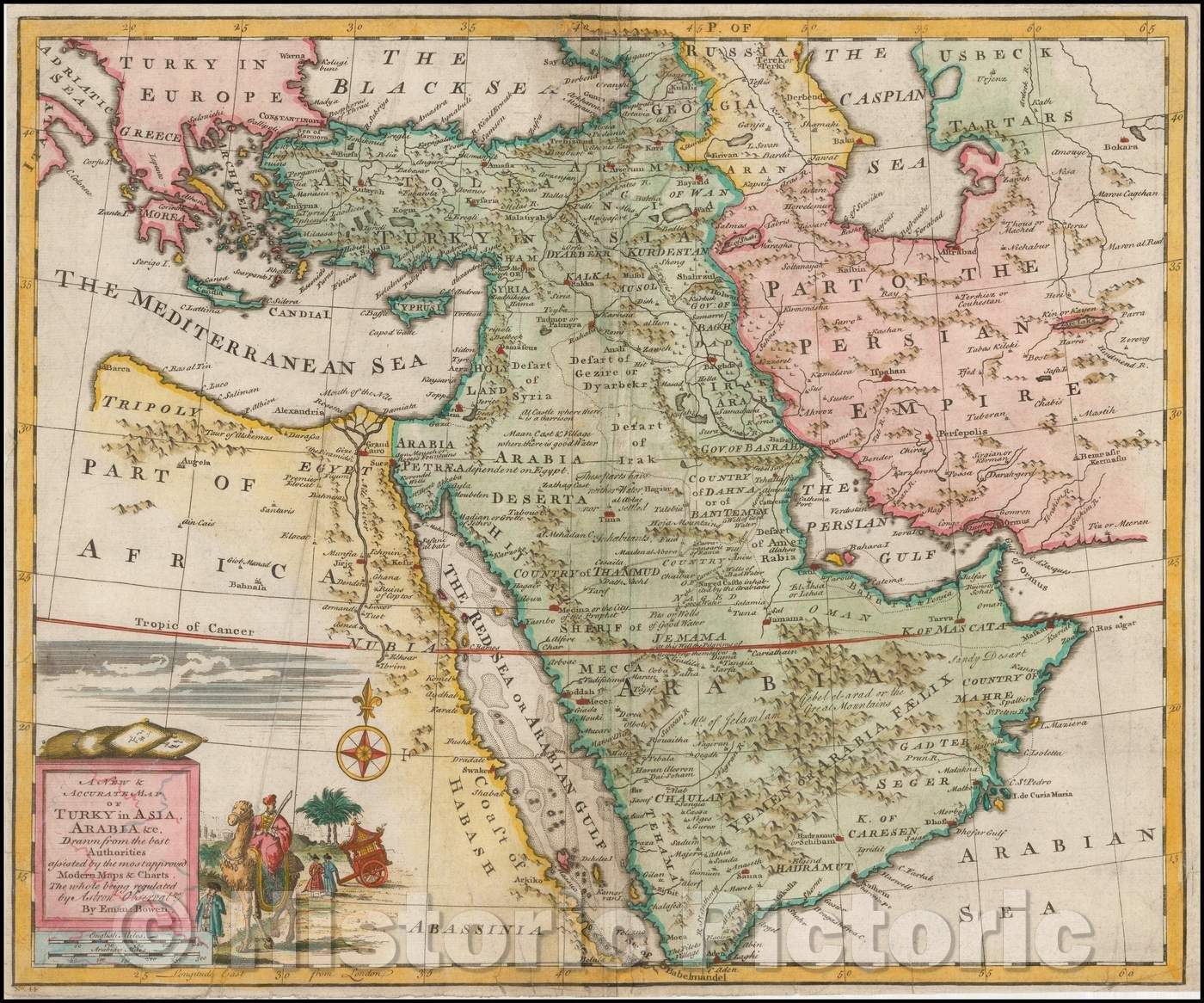 Historic Map - A New & Accurate Map of Turky in Asia, Arabia &c, 1744, Emanuel Bowen - Vintage Wall Art