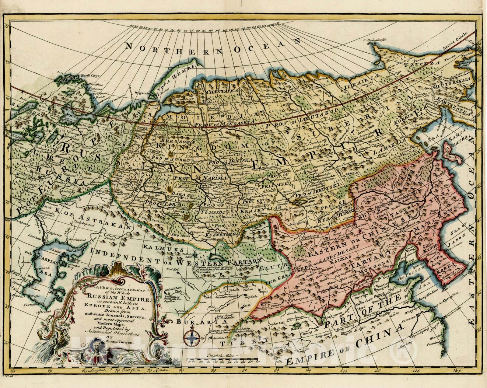 Historic Map : A New & Accurate Map of the Whole Russian Empire, as contained both in Europe and Asia., 1747, Emanuel Bowen, Vintage Wall Art