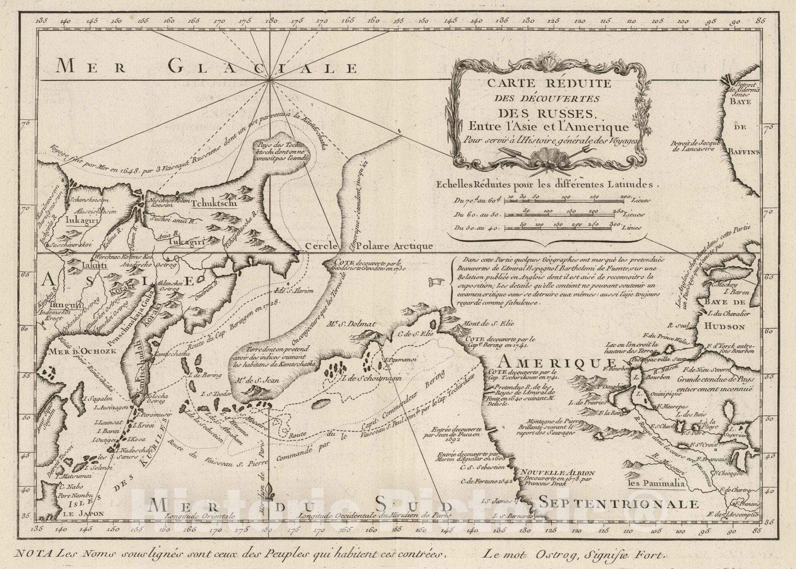 • .Historic Map : Pacific Coast (North America), Asia; North America 1764 Carte reduite des decouvertes des Russes : entre l'Asie et l'Amerique, Vintage Wall Art