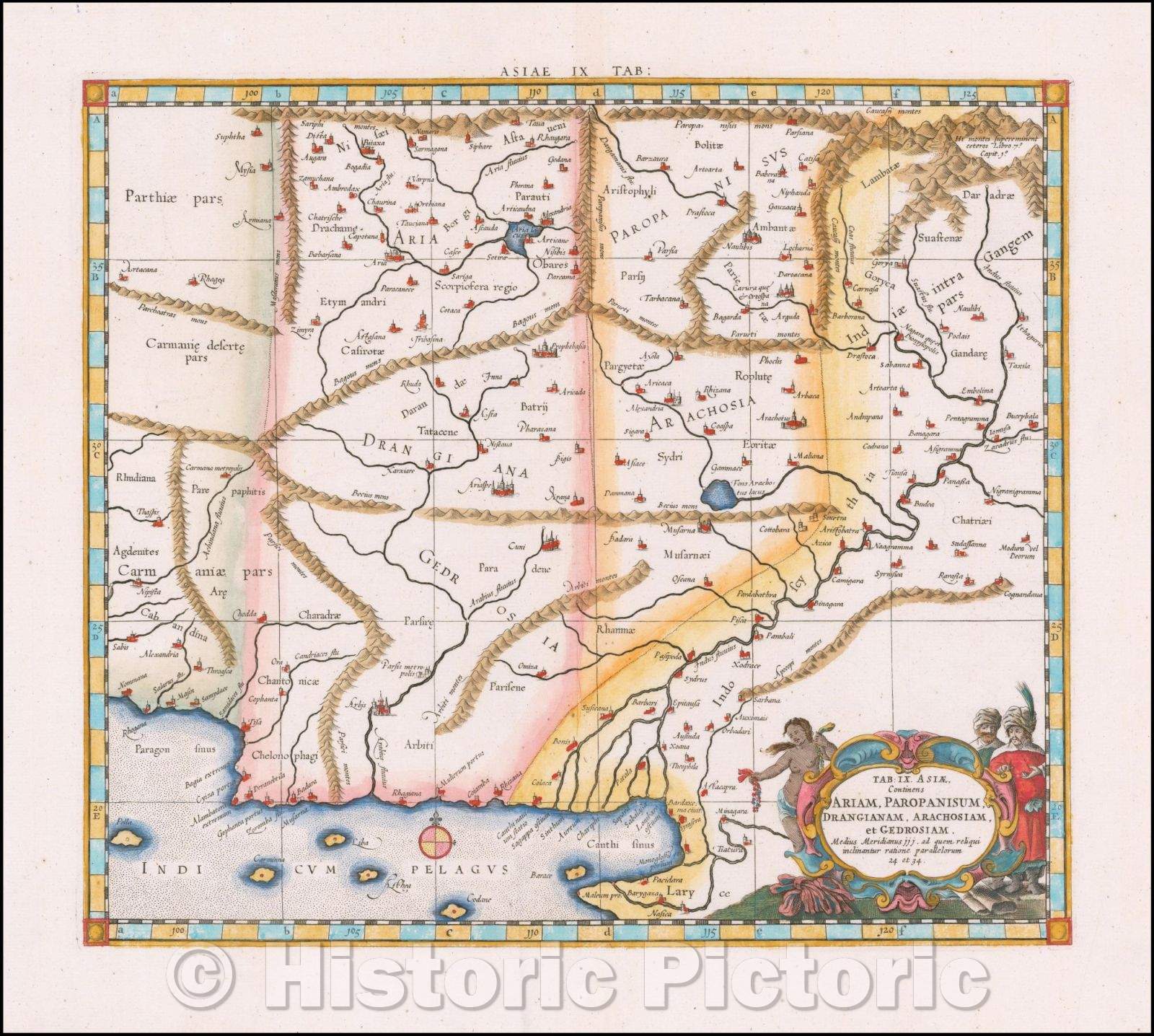 Historic Map - Pakistan Afghanistan & Western India Tab: IX Asia Continens Ariam, Paropanisum, Drangianam, Arachosiam, et Gedrosiam, 1697, Gerard Mercator v2