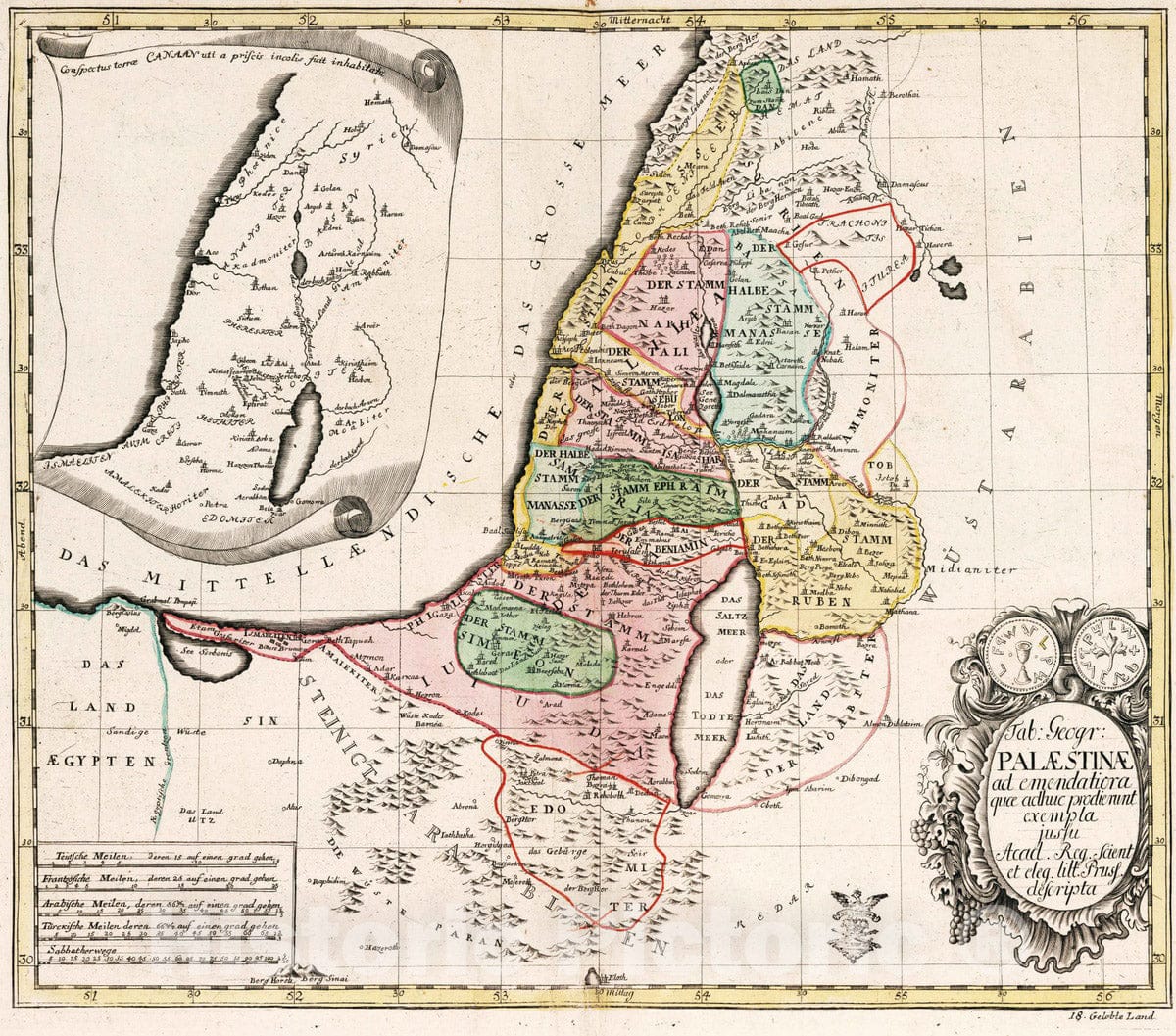 Historic Map : Palestine, Holy Land, Asia 1753 Tabula Geographica Palaestinae , Vintage Wall Art