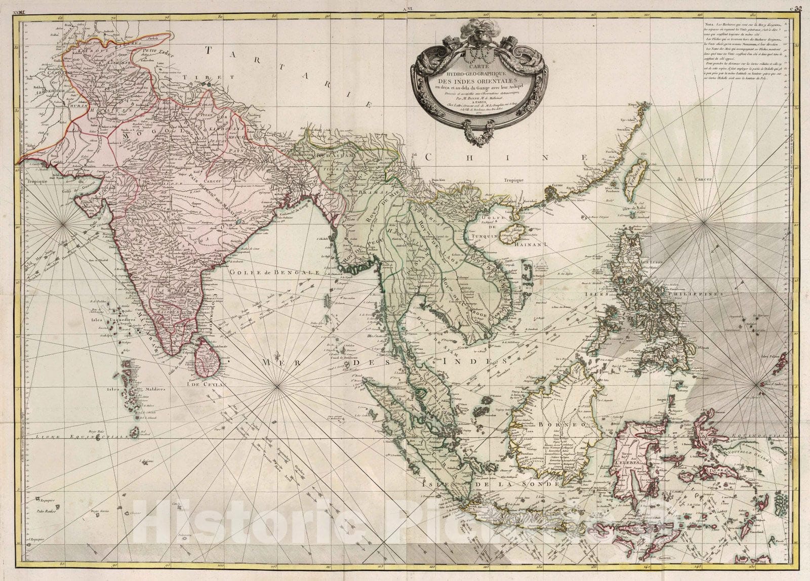 Historic Map : South Asia 1771 Carte hydro-geo-graphique des Indes orientales , Vintage Wall Art