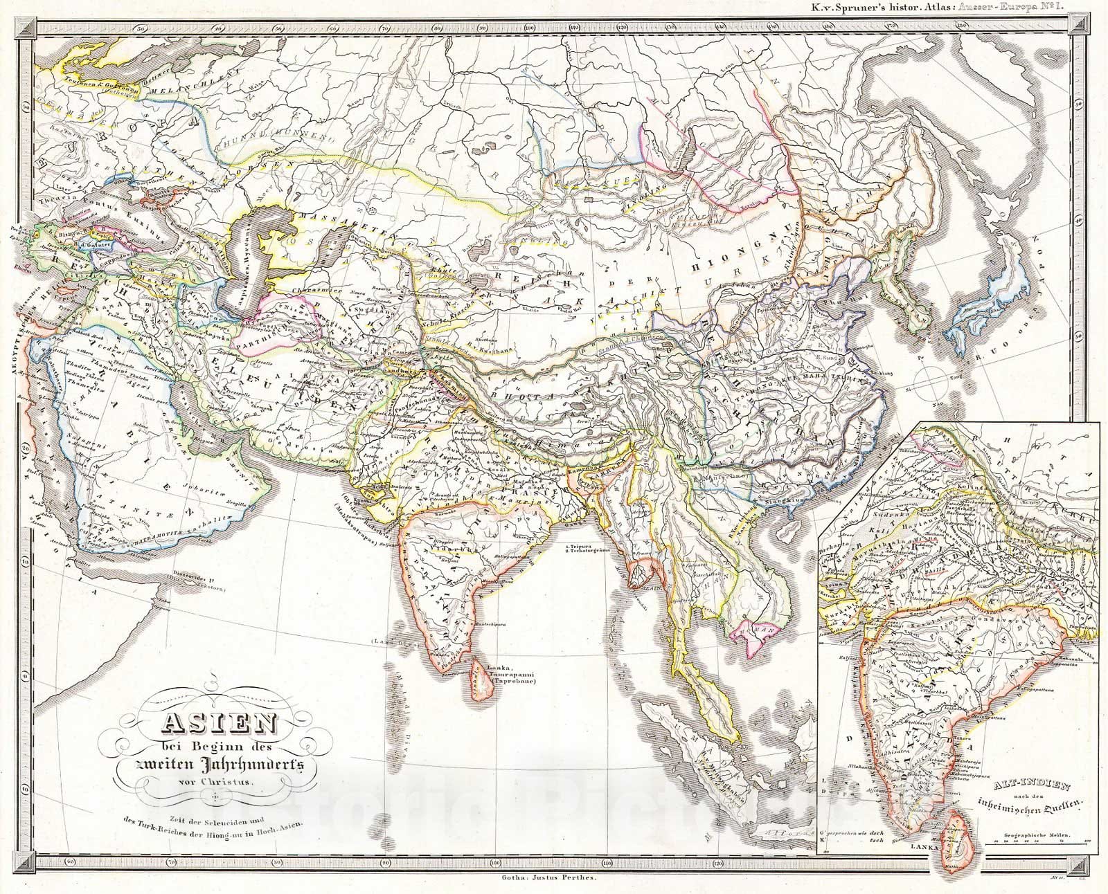 • .Historic Map : Spruner Map of Asia 200 B.C.E (Han China, Seleucid Empire) , 1855, Vintage Wall Art
