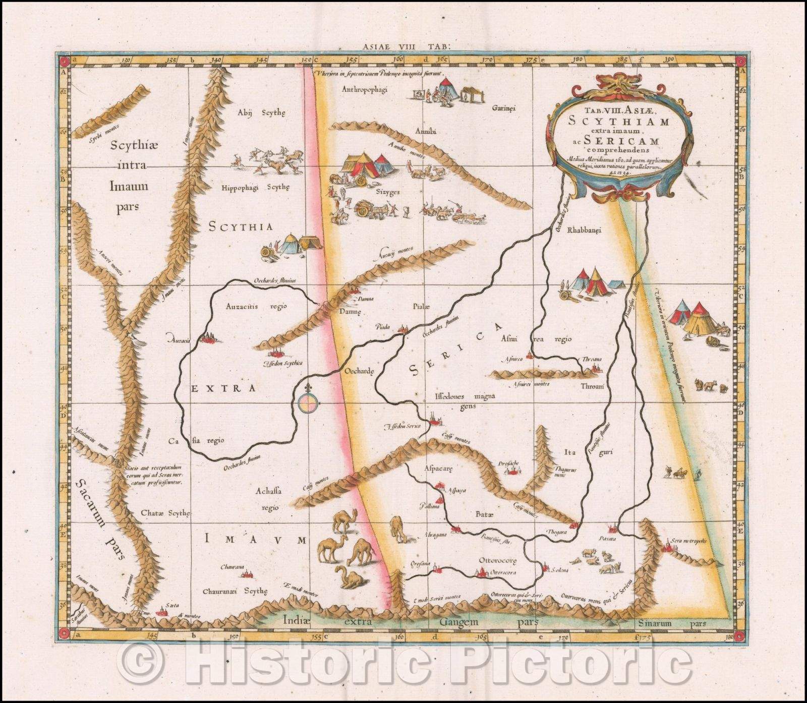 • .Historic Map - Tajikistan, Kyrgyzstan and Western China, Tab. XIII. Asiae Scythiam Extr, 1698 - Vintage Wall Art