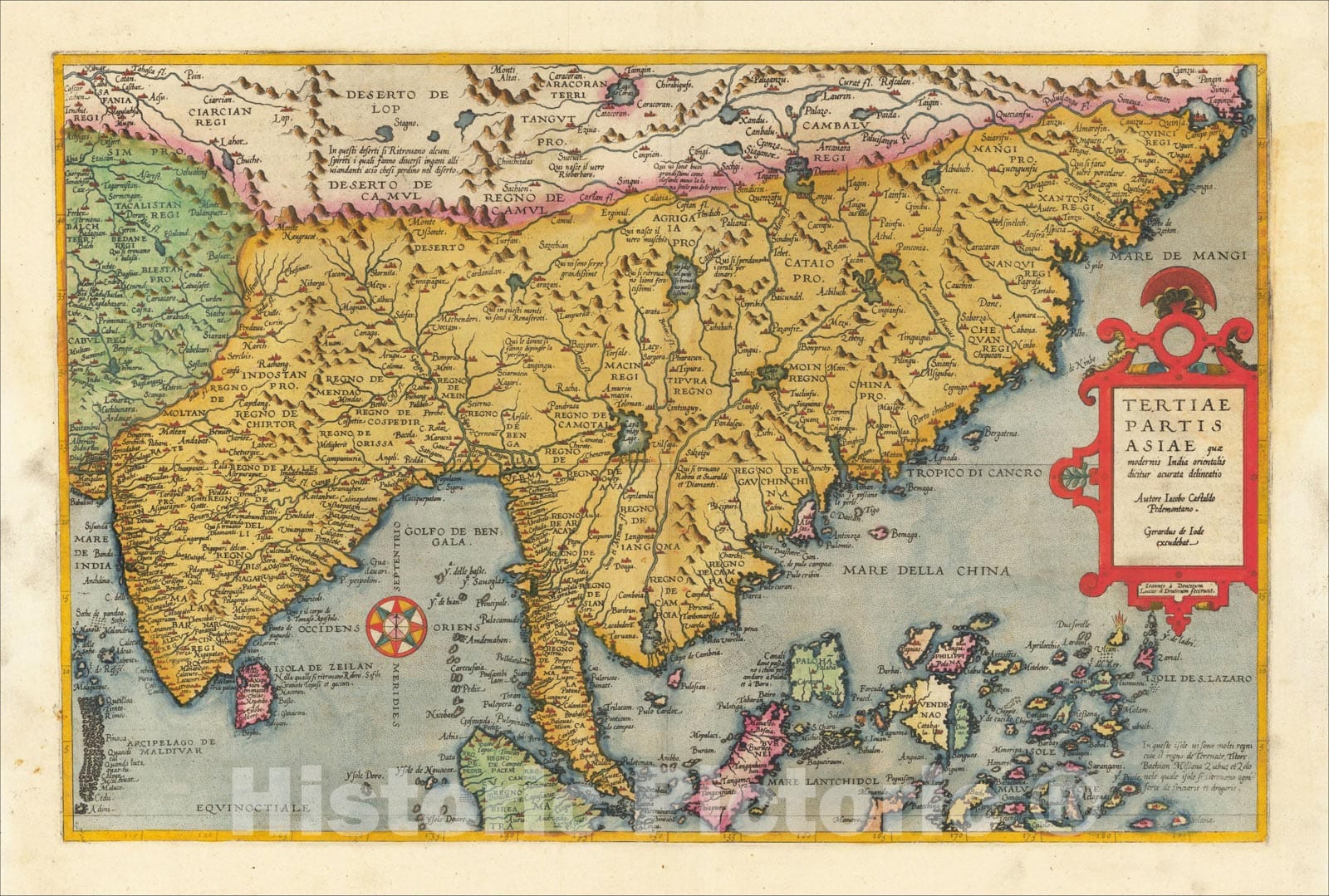 Historic Map : Tertiae Partis Asiae quae modernis India orientalis dicitur acurata delineatio Autore Iacobo Castaldo Pedemontano, 1593, Gerard de Jode, Vintage Wall Art