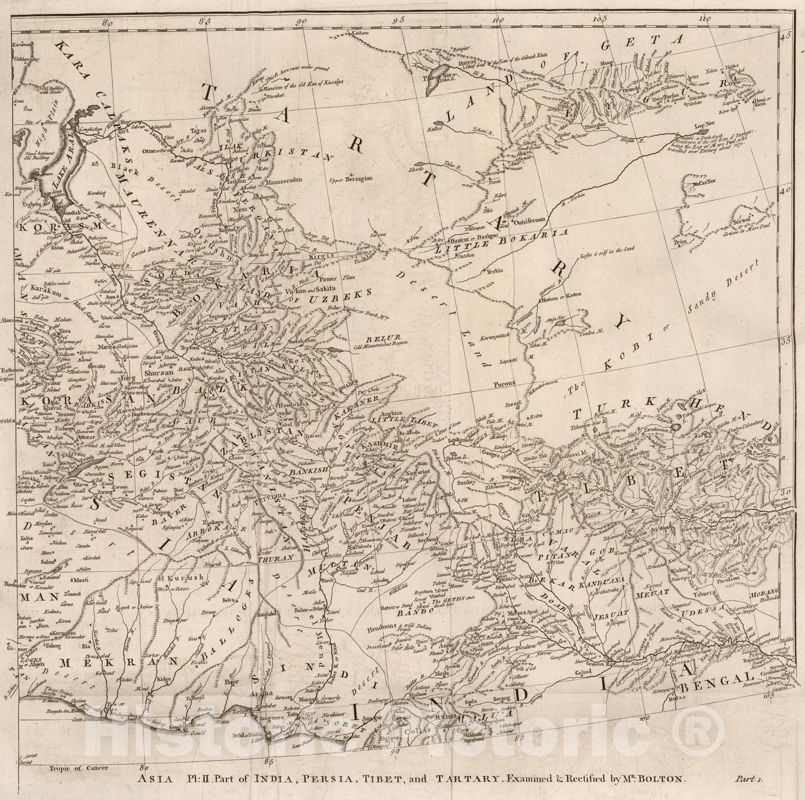 Historic Map : Vol. I. Asia. Part 1. Plate II. Part of India, Persia, Tibet, and Tartary, 1755, Vintage Wall Decor