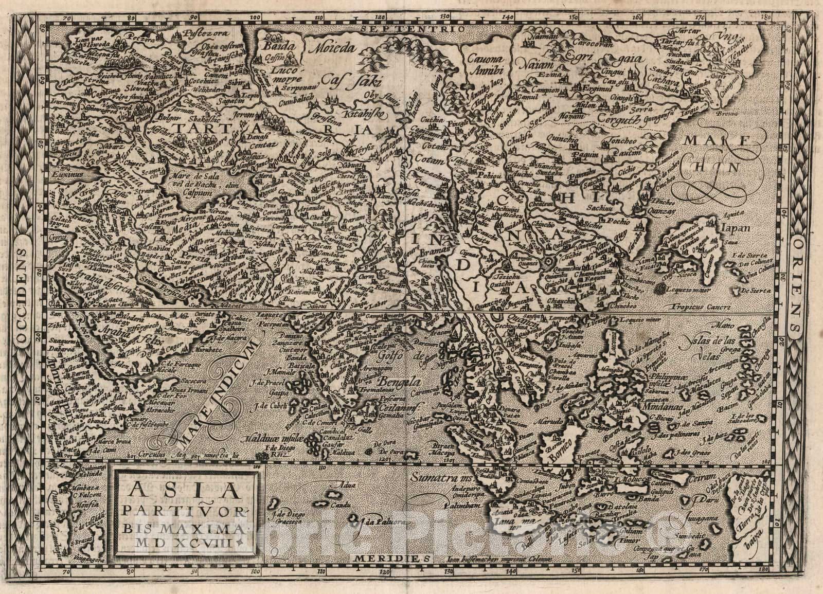 Historic Map : World Atlas Map, 4. Asia partium orbis maxima MDXCVIII. 1600 - Vintage Wall Art