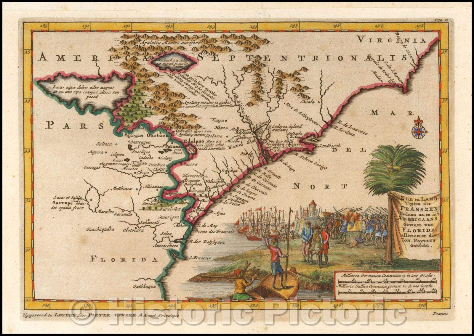 • .Historic Map - Zee en Land togten der Franszen Geaan na,en in't Americaans/Account of the New World published by Vander Aa, America, Asia and Africa, 1706 - Vintage Wall Art