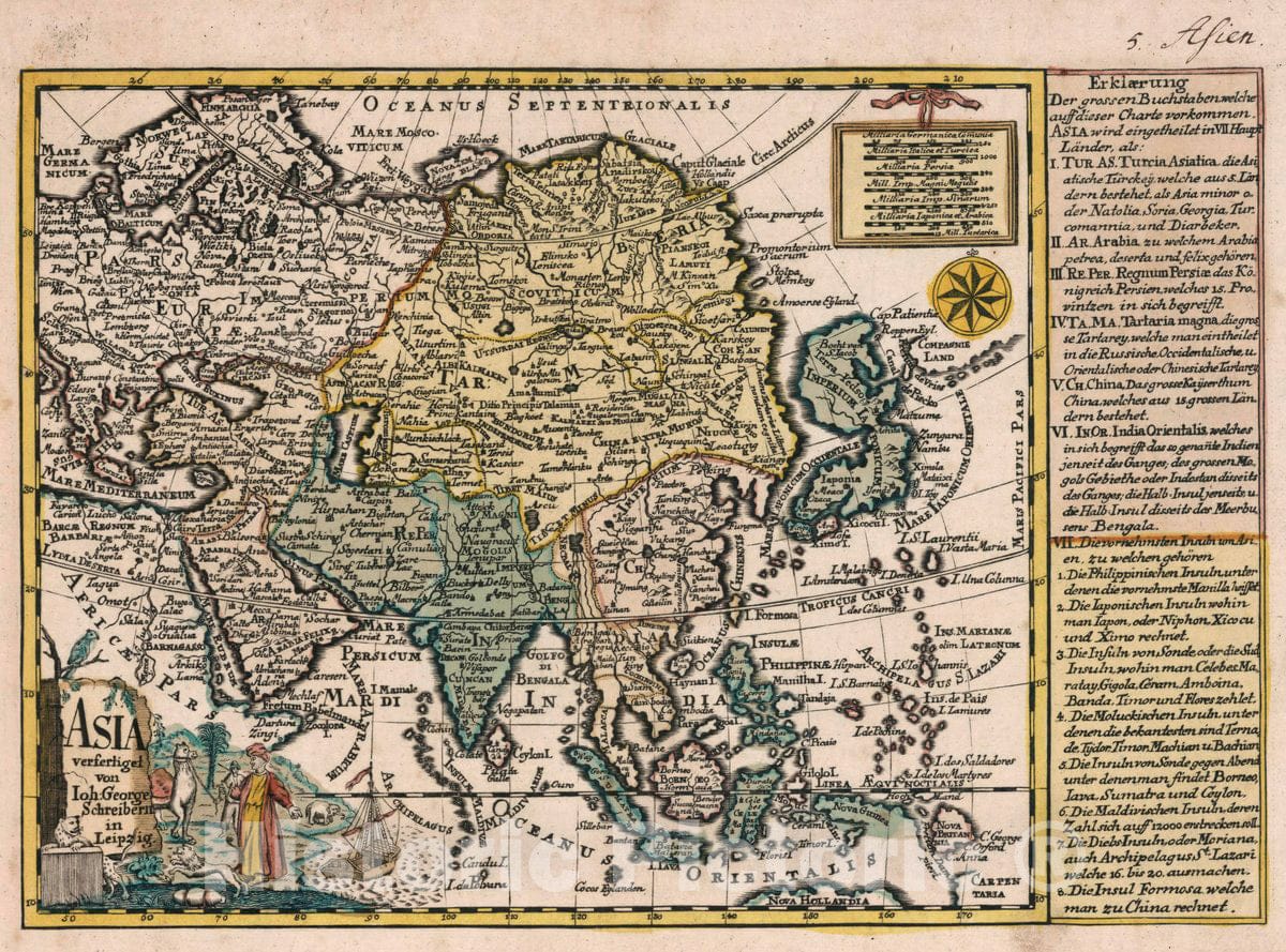 Historic Wall Map : Asia : verfertiget von Johann George Schreibern in Leipzig. Atlas selectus von allen Konigreichen und Landern der Welt, 1740 Atlas