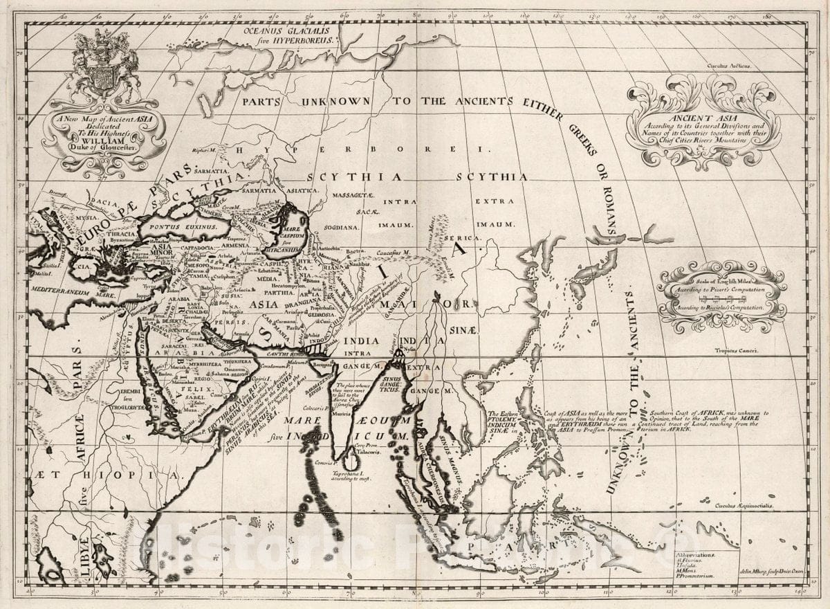 Historic Wall Map : A new map of ancient Asia. delin. M Burg. sculp. Univ. Oxon. A new sett of maps both of antient and present geography. 27, 1700 Atlas - Vintage Wall Art