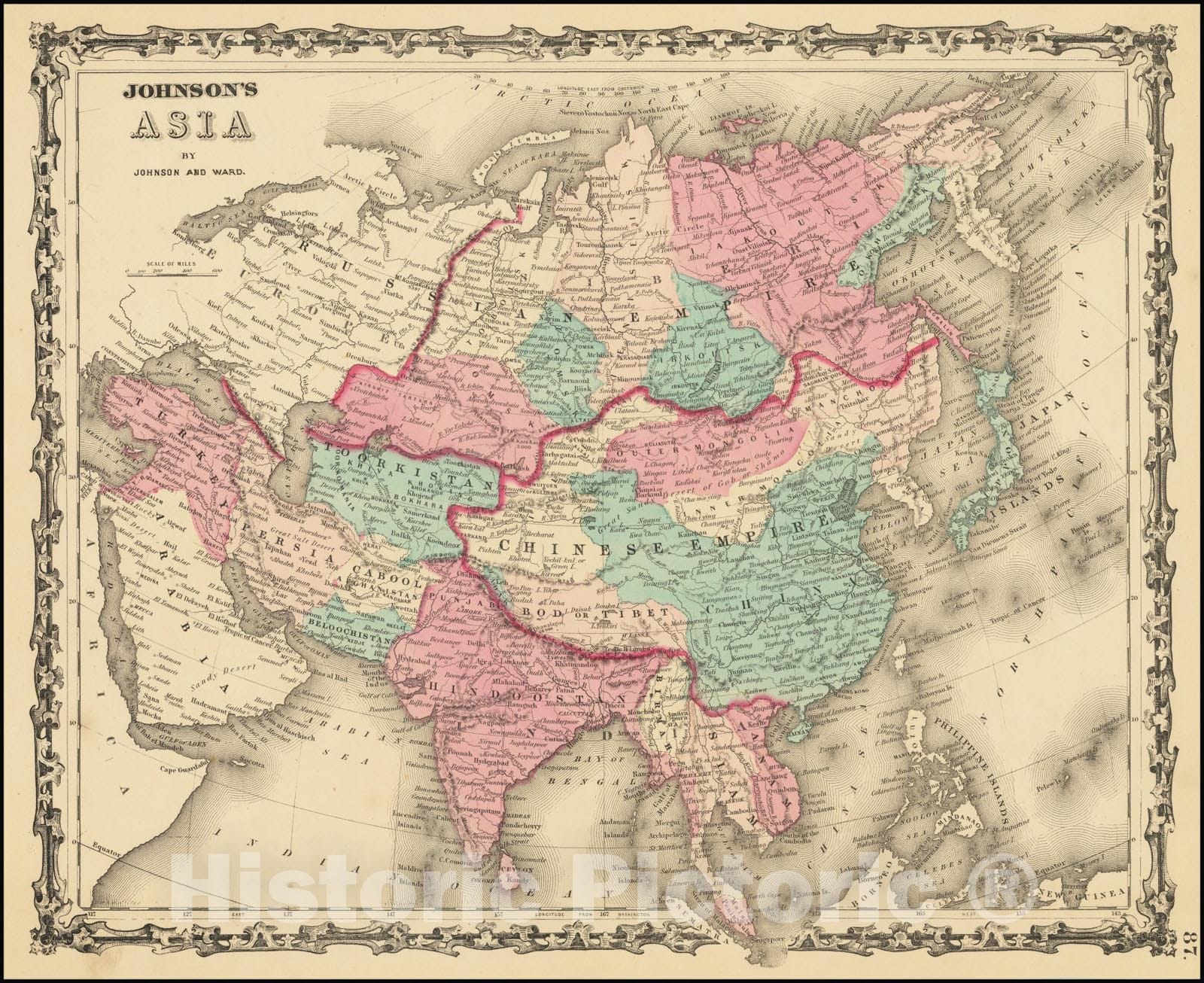 Historic Map : Johnson's Asia, 1862, Vintage Wall Art