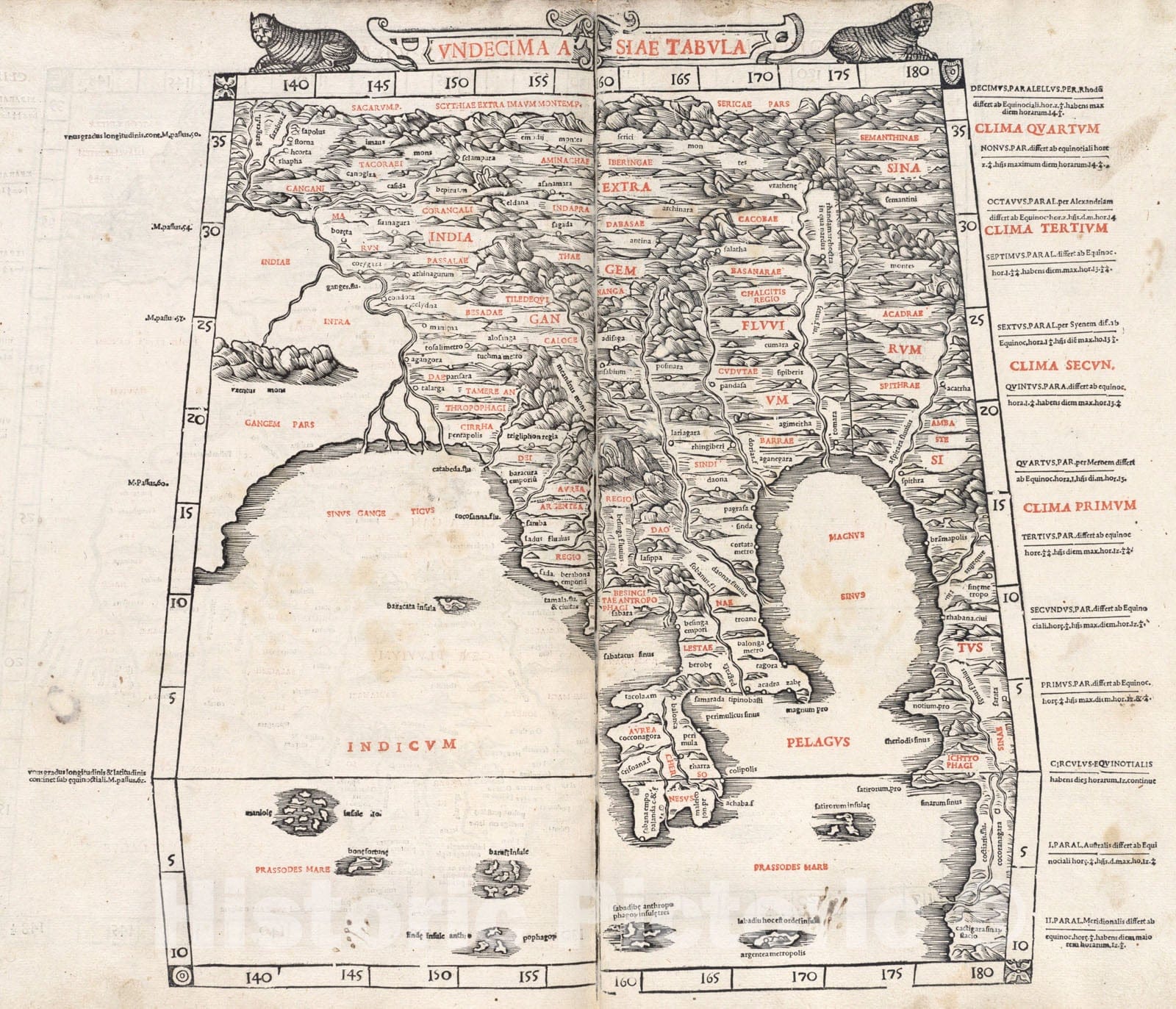 Historical Map, 1511 Undecima Asiae Tabula, Vintage Wall Art